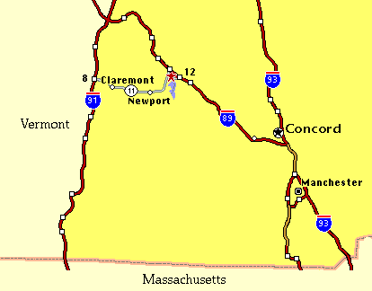 Approximately two and a half hours via I-91 North. Take Exit 8 in Vermont, then Routes 11 & 103 East through Claremont and Newport. Continue on Rt. 11 East through Sunapee toward New London into village of Georges Mills. The cottages are approximately 1/4 mile past the Mobil station on the left side.